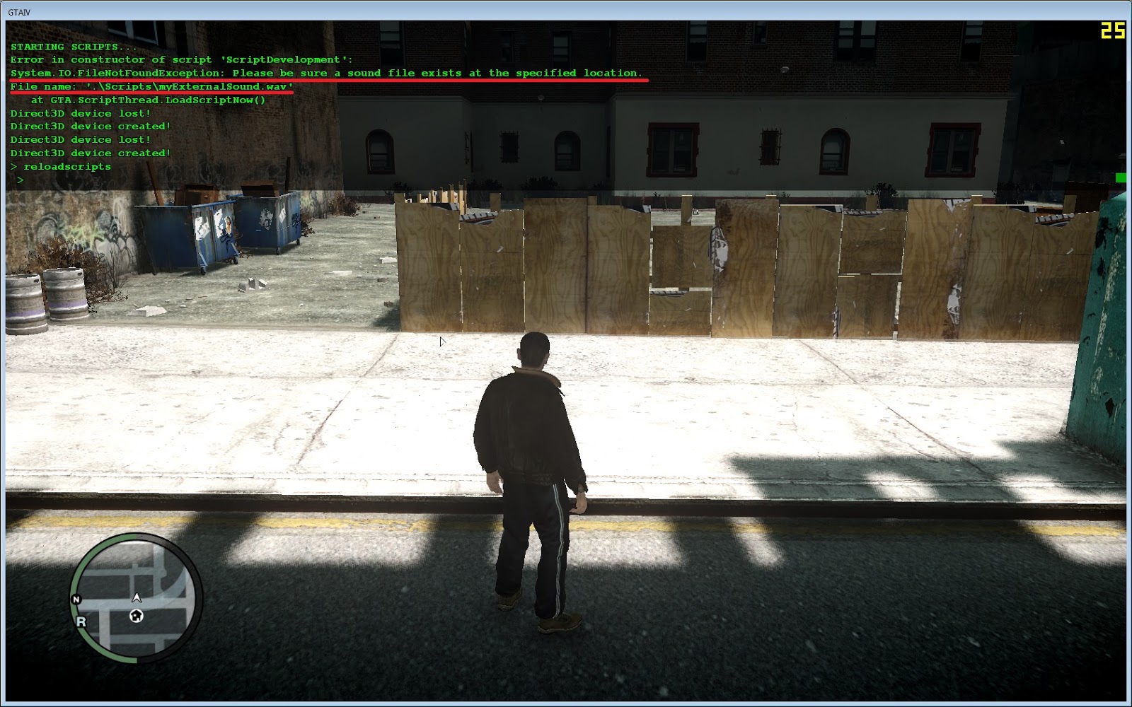 Press Control+S to save the file in your Scripts folder, save with the name sounds.txt, why? Because you will use this txt file with my Sound Demo script, so, download the script and the sounds.txt file and put in your Scripts folder, in the game press " to see the console window, type the command "sd" to enable the script:
